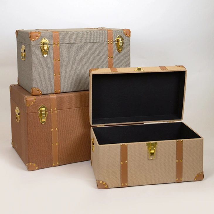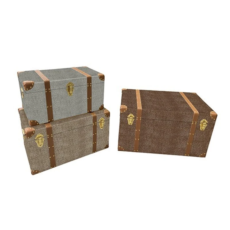 Μπαούλο Σετ 3τμχ Ξύλινο-Pu Μπεζ-Καφέ-Γκρι 63x40x35εκ.-53x34x30εκ.-47x28x25εκ. ESTHETI 752-28018