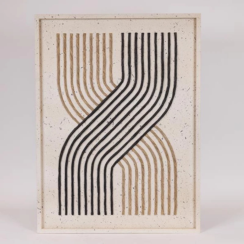 Πίνακας καμβάς ανάγλυφος με σχέδιο γραμμές σε λευκό - μπεζ και μαύρο χρώμα από την ESTHETI - Διαστάσεις: 60x3x80εκ.