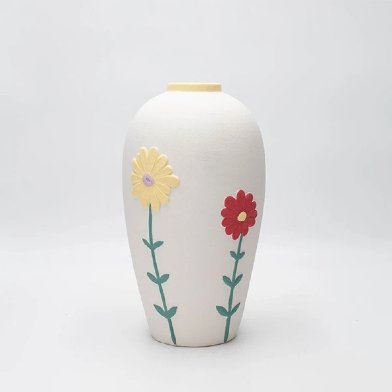 Βάζο κεραμικό σε λευκό χρώμα με λουλούδια από την ESTHETI - Διαστάσεις: 14x7x10εκ.