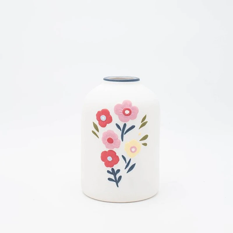 Βάζο κεραμικό σε λευκό χρώμα με λουλούδια από την ESTHETI - Διαστάσεις: 12,8x13,4x19,2εκ.