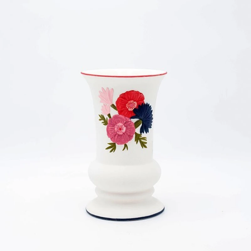 Βάζο πορσελάνης σε λευκό χρώμα με χρωματιστά λουλούδια από την ESTHETI - Διαστάσεις: 14,5x13,8x22,5εκ.