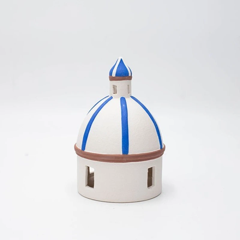 Επιτραπέζιο διακοσμητικό σπιτάκι πορσελάνης με led σε λευκό - μπλε χρώμα από την ESTHETI - Διαστάσεις: 9,7x9,7x14,5εκ.