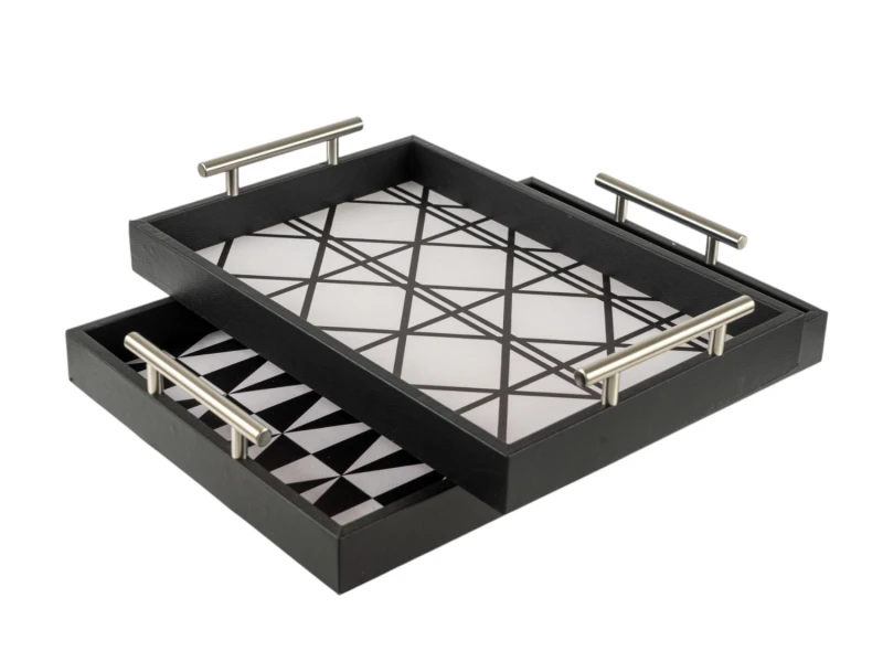 Σετ 2τμχ δίσκοι σερβιρίσματος σε λευκό-μαύρο χρώμα από την Zen Collection - Διαστάσεις: 44x31x4εκ.-40x27x4εκ.
