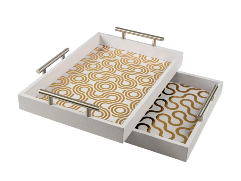 Σετ 2τμχ δίσκοι σερβιρίσματος σε λευκό-χρυσό χρώμα από την Zen Collection - Διαστάσεις: 44x31x4εκ.-40x27x4εκ.