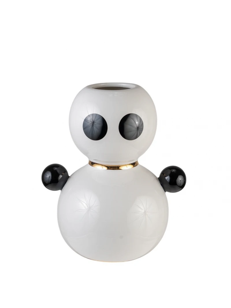 Βάζο ανθρωπάκι κεραμικό σε λευκό-μαύρο-χρυσό χρώμα από την Zen Collection - Διαστάσεις: 17x13x20εκ.