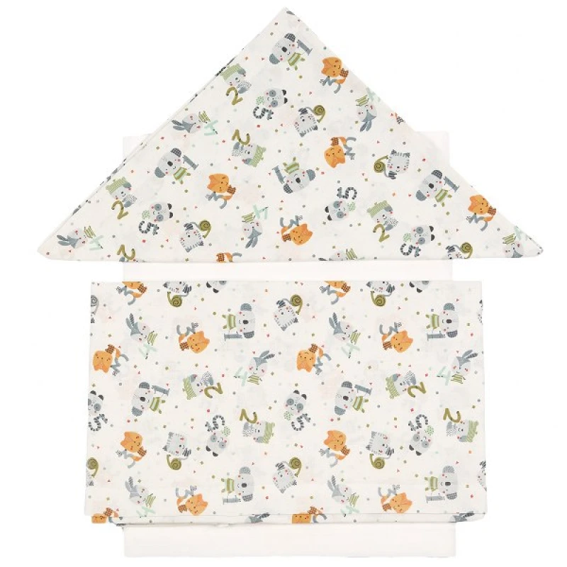 Σετ σεντόνια κούνιας, 100% βαμβακερά, ελληνικής κατασκευής από την εταιρεία Ο Κόσμος του Μωρού - Το σετ περιλαμβάνει: 1 πανωσέντονο 100x160εκ., 1 κατωσέντονο 100x160εκ. και 1 μαξιλαροθήκη 37x45εκ.