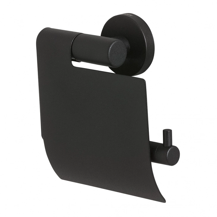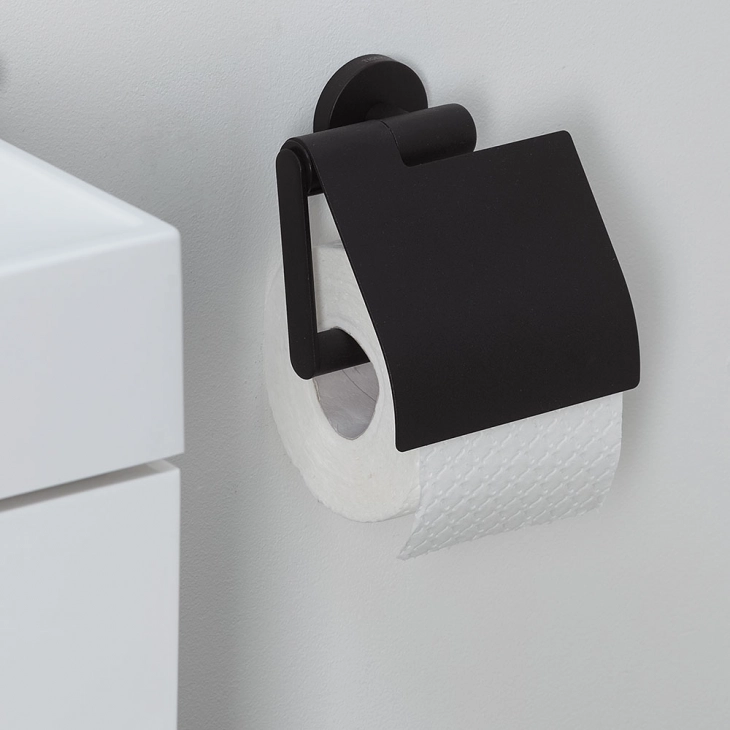 Η θήκη ρολού τουαλέτας Tiger Boston με κάλυμμα διαθέτει σύγχρονο μαύρο ματ φινίρισμα. Η θήκη ρολού τουαλέτας μπορεί εύκολα να τοποθετηθεί σε οποιαδήποτε επιθυμητή θέση στον τοίχο, έτσι ώστε το χαρτί υγείας να είναι πάντα εύκολα προσβάσιμο. Το προϊόν είναι προσαρτημένο σε μια πλάκα τοίχου, πράγμα που σημαίνει ότι το υλικό τοποθέτησης (περιλαμβάνεται) είναι κρυμμένο για μια κομψή εμφάνιση. Η σειρά Boston περιλαμβάνει μια μεγάλη ποικιλία από άλλα αξεσουάρ για το μπάνιο και την τουαλέτα, όλα όμορφα συνδυασμένα.