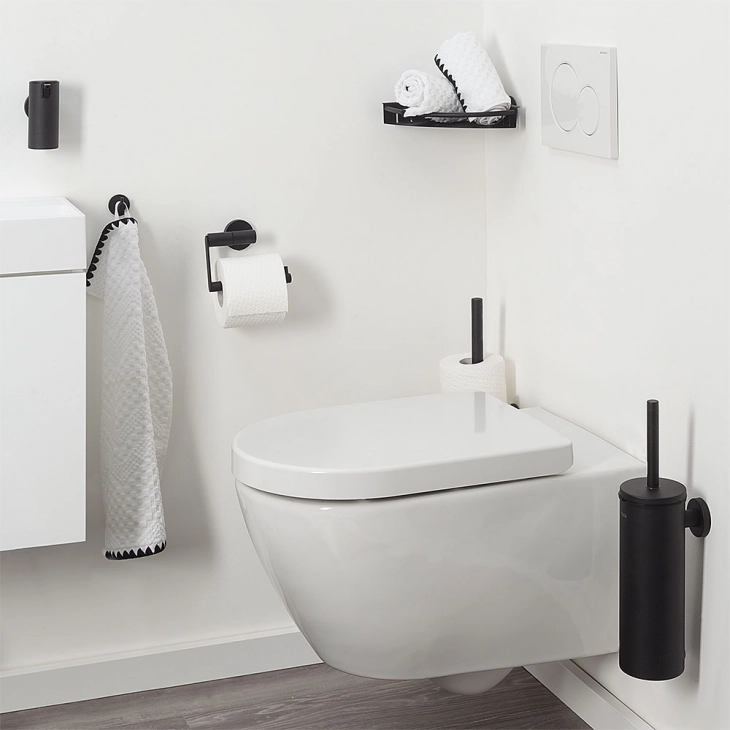 Η βάση για ρολό τουαλέτας Tiger Boston διαθέτει σύγχρονο μαύρο ματ φινίρισμα. Η θήκη ρολού τουαλέτας μπορεί εύκολα να τοποθετηθεί σε οποιαδήποτε επιθυμητή θέση στον τοίχο, έτσι ώστε το χαρτί υγείας να είναι πάντα εύκολα προσβάσιμο. Το προϊόν είναι προσαρτημένο σε μια πλάκα τοίχου, πράγμα που σημαίνει ότι το υλικό τοποθέτησης (περιλαμβάνεται) είναι κρυμμένο για μια κομψή εμφάνιση. Η σειρά Boston περιλαμβάνει μια μεγάλη ποικιλία από άλλα αξεσουάρ για το μπάνιο και την τουαλέτα, όλα όμορφα συνδυασμένα.