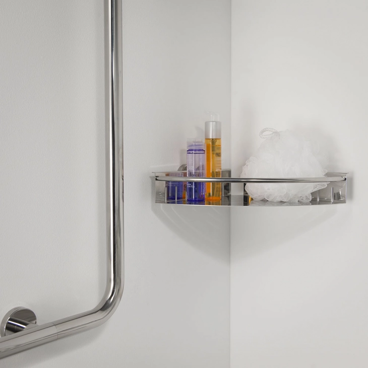 Αυτή η μεγαλύτερη έκδοση του γωνιακού καλαθιού ντους Tiger Boston, κατασκευασμένο από γυαλισμένο ανοξείδωτο ατσάλι, είναι ο τέλειος τρόπος για να έχετε κοντά σας τη συλλογή σαμπουάν, μαλακτικών και αφρόλουτρων στο χέρι καθώς απολαμβάνετε το ντους. Και με το επίπεδο κάτω μέρος και τις ψηλές πλευρές, όλα τα προϊόντα σας είναι βέβαιο ότι θα παραμείνουν με ασφάλεια στο καλάθι. Προορίζεται για τοποθέτηση στη γωνία, αυτό το καλάθι ντους είναι μια μεγάλη εξοικονόμηση χώρου στο ντους, για παράδειγμα. Το γωνιακό καλάθι μπορεί εύκολα να τοποθετηθεί στον τοίχο και το υλικό στερέωσης (περιλαμβάνεται) είναι κρυμμένο για κομψή εμφάνιση. Εκτός από αυτό το εύχρηστο, κομψό καλάθι ντους, η σειρά Boston περιλαμβάνει μια μεγάλη ποικιλία από άλλα αξεσουάρ για το μπάνιο και την τουαλέτα.