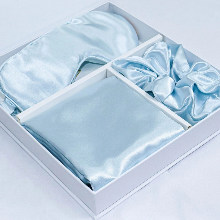 Το Σετ Δώρου 3 τεμαχίων της Melinen αποτελείται από μια μαξιλαροθήκη (50x70cm), μια μάσκα ύπνου (21x9cm) και ένα κοκαλάκι scrunchie. Η σύνθεσή του από 100% αγνό μετάξι αγκαλιάζει απαλά την επιδερμίδα σας και της επιτρέπει να αναπνέει, ρυθμίζοντας έτσι φυσικά τη θερμοκρασία της και προστατεύοντας από τη γήρανση, ενώ παράλληλα έχει υποαλλεργικές ιδιότητες. Συμβάλλει στην συνολική προστασία του δέρματος αφού το βοηθά να διατηρείται απαλό & ενυδατωμένο, ενώ ταυτόχρονα αποτρέπει την ανάπτυξη της ακμής. Παράλληλα, προστατεύει τα μαλλιά από το μπλέξιμο και τα διατηρεί απαλά κι ευκολοχτένιστα. Διατίθεται σε έξι υπέροχες αποχρώσεις & αποτελεί ιδανική πρόταση για δώρο.