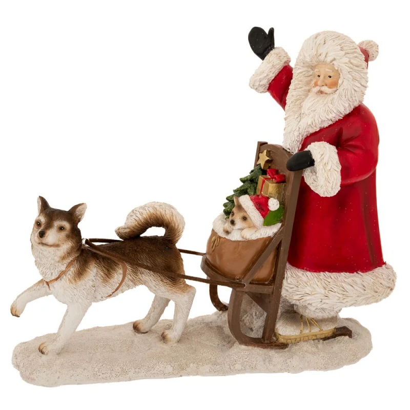 Χριστουγεννιάτικο διακοσμητικό polyresin με φιγούρα Άγιο Βασίλη σε έλκυθρο με σκύλο από την iliadis - Διαστάσεις: 21x12,5x22,5εκ.