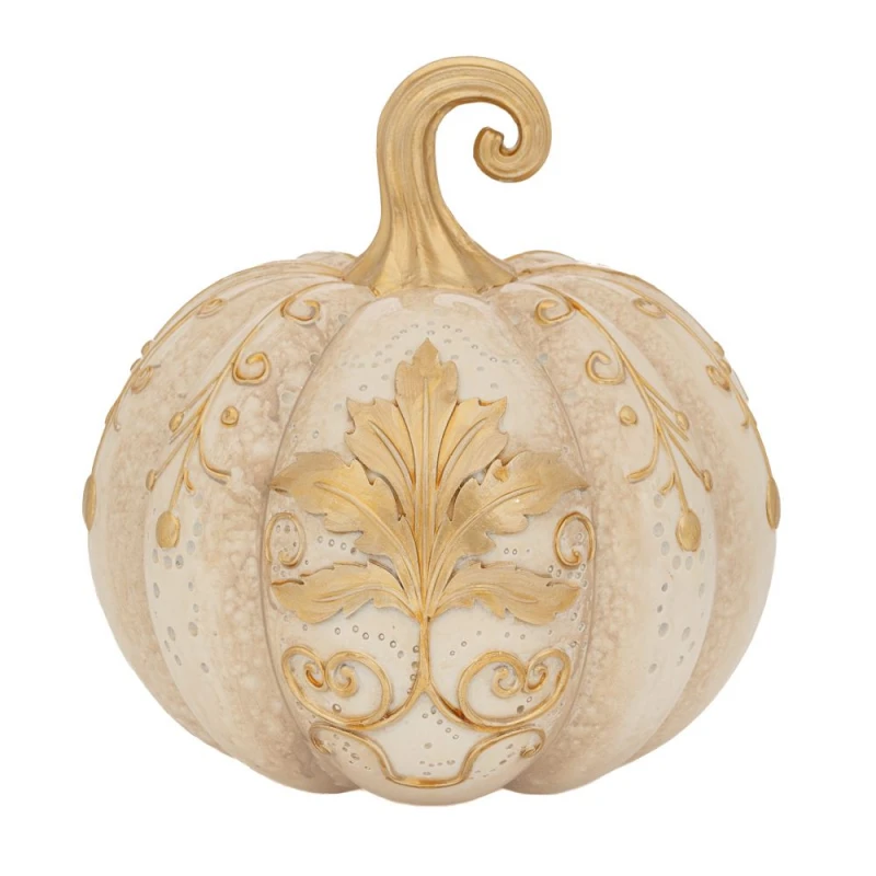Διακοσμητική κολοκύθα σε εκρού χρώμα με χρυσές λεπτομέρειες από την iliadis - Διαστάσεις: 19,5x19,5x19,5εκ.