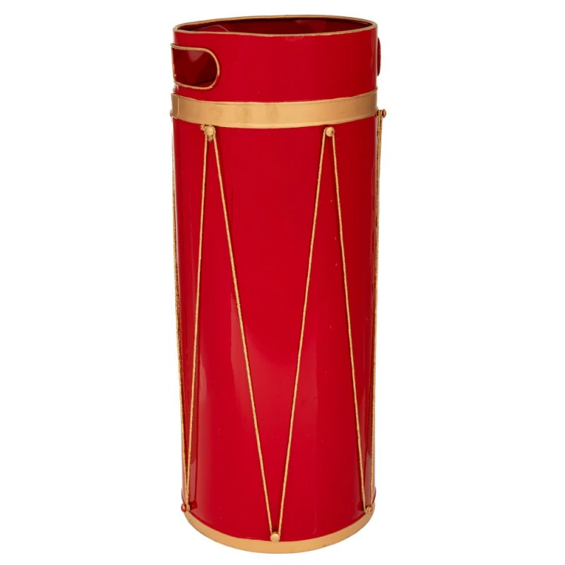 Χριστουγεννιάτικη ομπρελοθήκη σε σχήμα τυμπάνου μεταλλική σε κόκκινο-χρυσό χρώμα από την iliadis - Διαστάσεις: 22x22x50εκ.