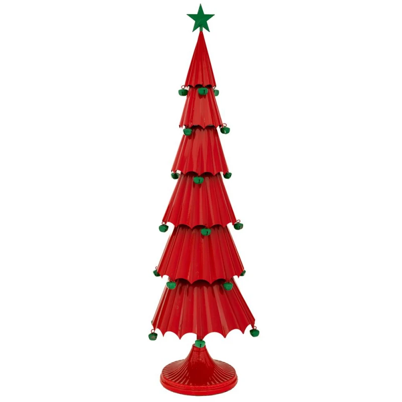 Χριστουγεννιάτικο δέντρο μεταλλικό σε κόκκινο χρώμα με πράσινες λεπτομέρειες από την iliadis - Διαστάσεις: 28,5x28,5x96,5εκ.