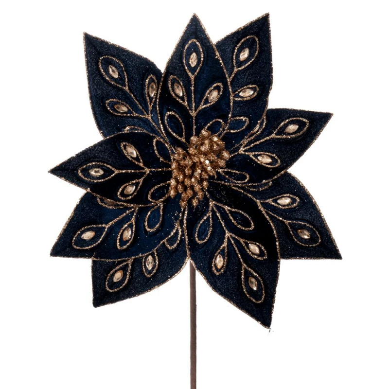 Χριστουγεννιάτικο κλαδί αλεξανδρινό βελούδινο σε μπλε χρώμα με χρυσές λεπτομέρειες και στρας από την iliadis - Διαστάσεις: 60εκ. - Η ελάχιστη ποσότητα αγοράς για αυτό το προϊόν είναι 4τμχ.