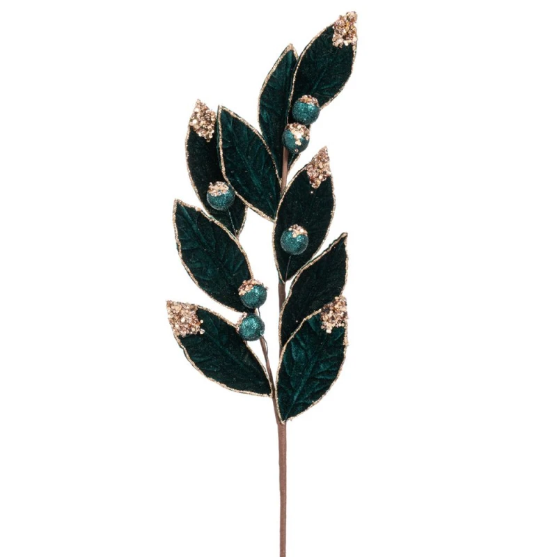 Χριστουγεννιάτικο κλαδί βελούδινο σε σμαραγδί χρώμα με μπάλες και glitter από την iliadis - Διαστάσεις: 65εκ.- Η ελάχιστη ποσότητα αγοράς για αυτό το προϊόν είναι 6τμχ.