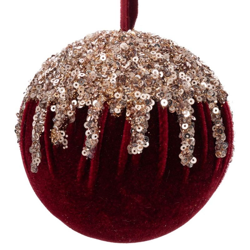 Χριστουγεννιάτικη μπάλα βελούδινη σε μπορντώ χρώμα από την iliadis - Διαστάσεις: 10εκ. - Η ελάχιστη ποσότητα αγοράς για αυτό το προϊόν είναι 12τμχ.