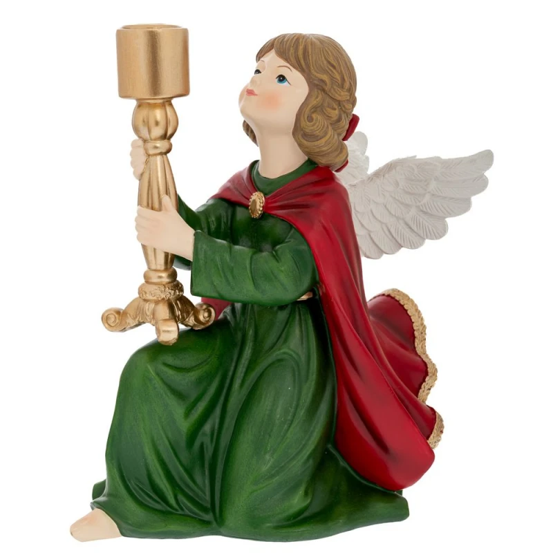 Χριστουγεννιάτικο κηροπήγιο κεραμικό αγγελάκι σε πράσινο-κόκκινο χρώμα από την iliadis - Διαστάσεις: 23x17x25εκ.