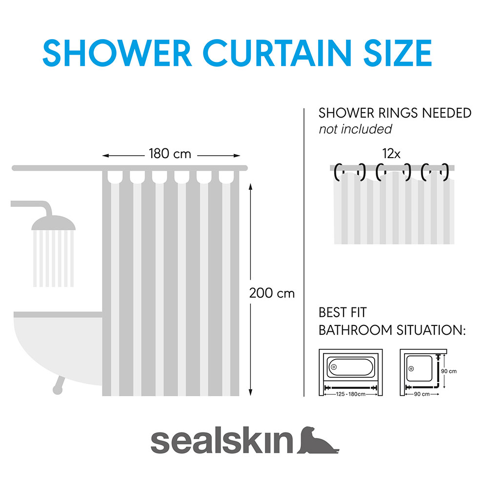 Αναβαθμίστε το μπάνιο σας με την κομψή κουρτίνα μπάνιου Sealskin Cosima. Η κουρτίνα μπάνιου είναι αδιάβροχη και μένει τακτοποιημένη στη θέση της χάρη στο ενισχυμένο κάτω στρίφωμα. Ιδανική για να διατηρείτε στεγνό το μπάνιο σας! Η κουρτίνα ταιριάζει σε κάθε στυλ μπάνιου. Εκτός από πρακτική, είναι και μια κομψή προσθήκη. Απολαύστε ένα στεγνό και μοντέρνο μπάνιο με την κουρτίνα μπάνιου Sealskin Cosima.