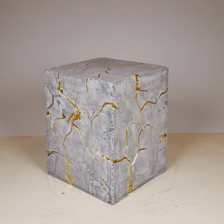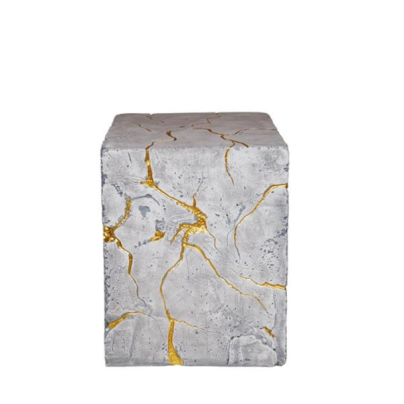 Βοηθητικό τραπεζάκι μαγνησίτης σε γκρι-χρυσό χρώμα από την ESTHETI - Διαστάσεις: 42x42x51,5εκ.