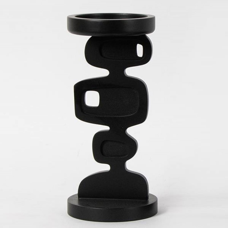 Κηροπήγιο μεταλλικό - ξύλινο σε μαύρο χρώμα από την ESTHETI - Διαστάσεις: 12x26εκ.