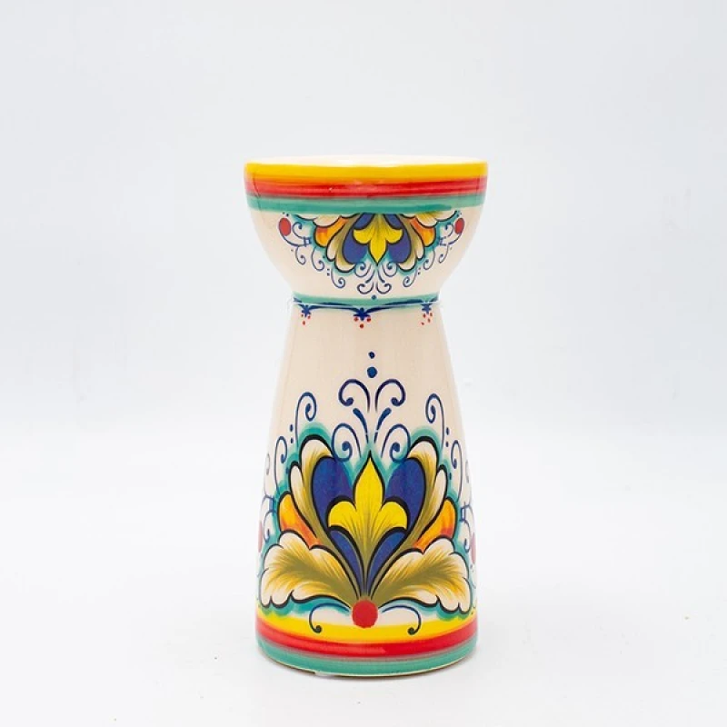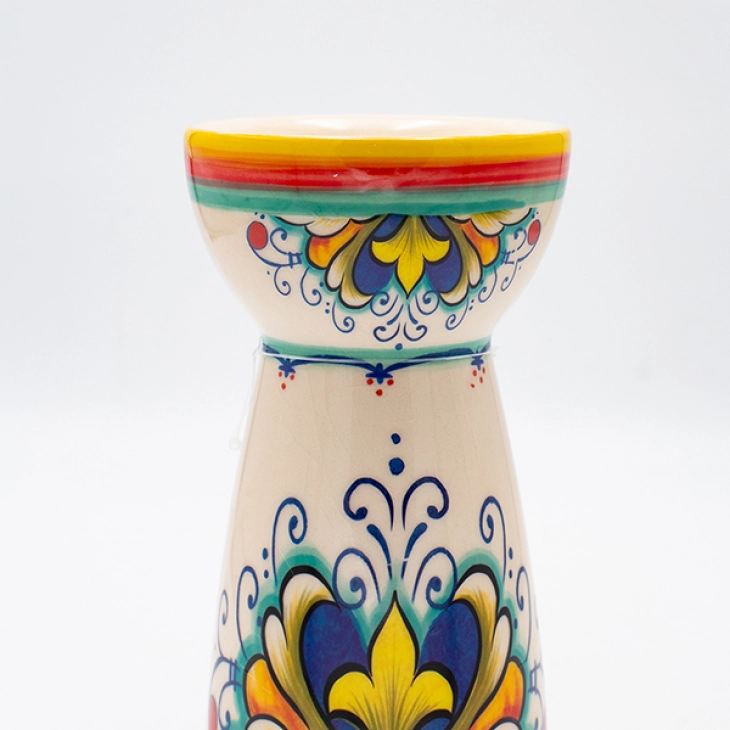 Κηροπήγιο κεραμικό σε μπεζ χρώμα με πολύχρωμα σχέδια από την ESTHETI - Διαστάσεις: 10,2x21εκ.