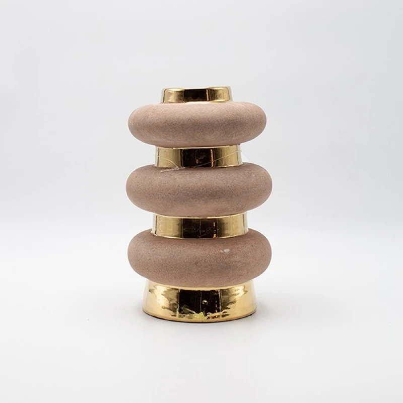 Βάζο κεραμικό στο χρώμα της άμμου με χρυσές λεπτομέρειες από την ESTHETI - Διαστάσεις: 16x16x24εκ.