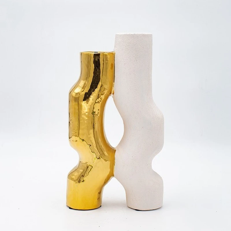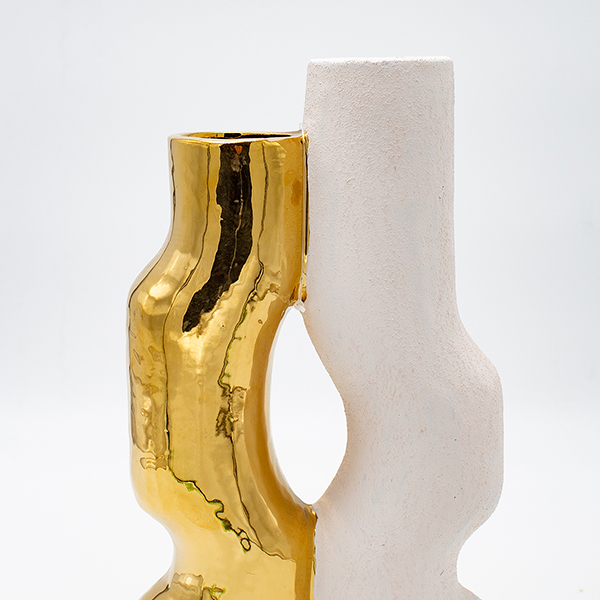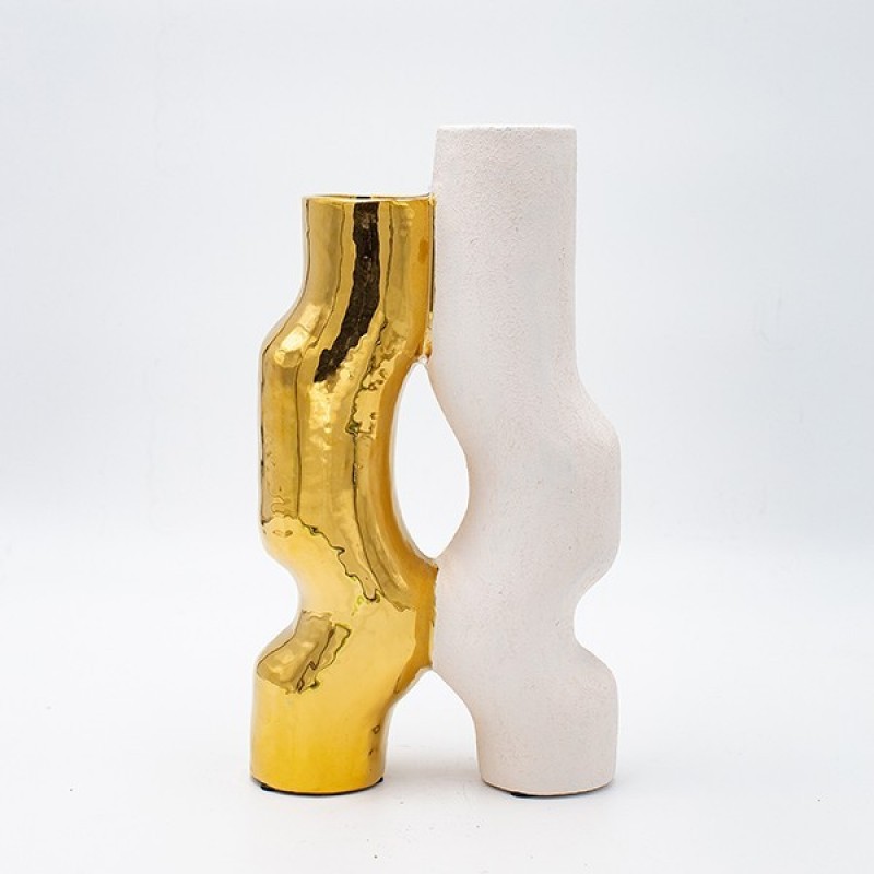 Βάζο Κεραμικό Λευκό-Χρυσό 15,5x6,5x27,5εκ. ESTHETI 819-00714