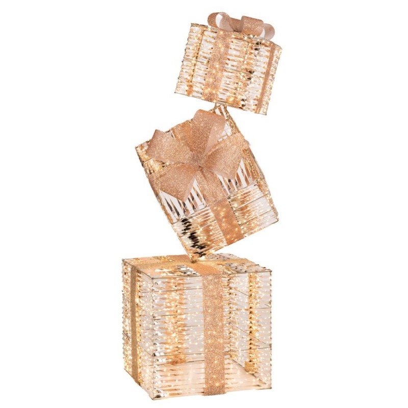 Χριστουγεννιάτικη φωτιζόμενη στήλη δώρων σε χρυσό χρώμα με 1500 led θερμό λευκό φως από την iliadis - Διαστάσεις: 30x30x95εκ.