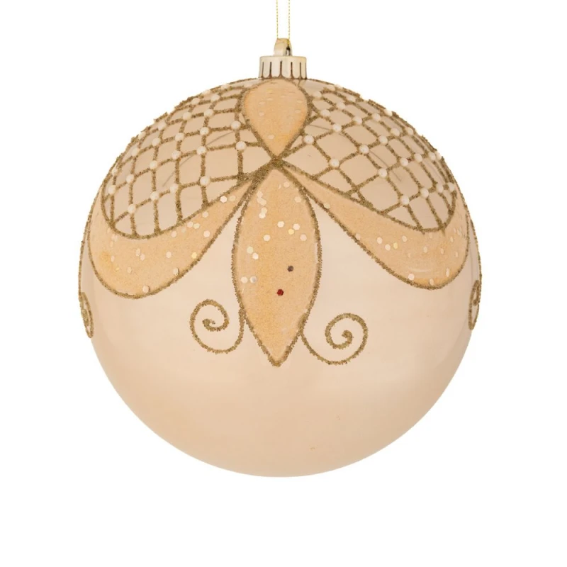 Χριστουγεννιάτικη μπάλα πλαστική, περλέ με σχέδια σε σαμπανί χρώμα από την iliadis - Διαστάσεις: 15εκ. - Η ελάχιστη ποσότητα αγοράς για αυτό το προϊόν είναι 4τμχ.
