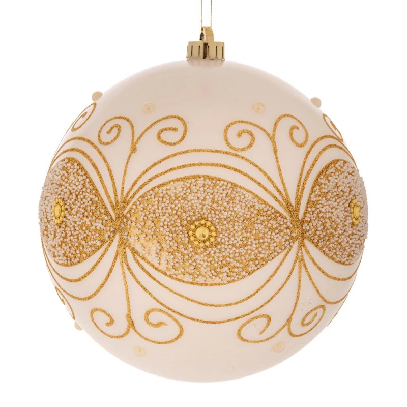 Χριστουγεννιάτικη μπάλα πλαστική, περλέ με σχέδια σε λευκό χρώμα από την iliadis - Διαστάσεις: 20εκ. - Η ελάχιστη ποσότητα αγοράς για αυτό το προϊόν είναι 2τμχ.
