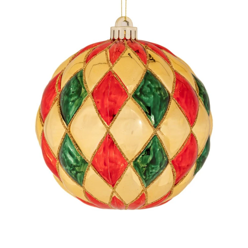 Χριστουγεννιάτικη Μπάλα Πλαστική Γυαλιστερή Με Σχέδια Κόκκινη-Πράσινη 10εκ. iliadis 90973