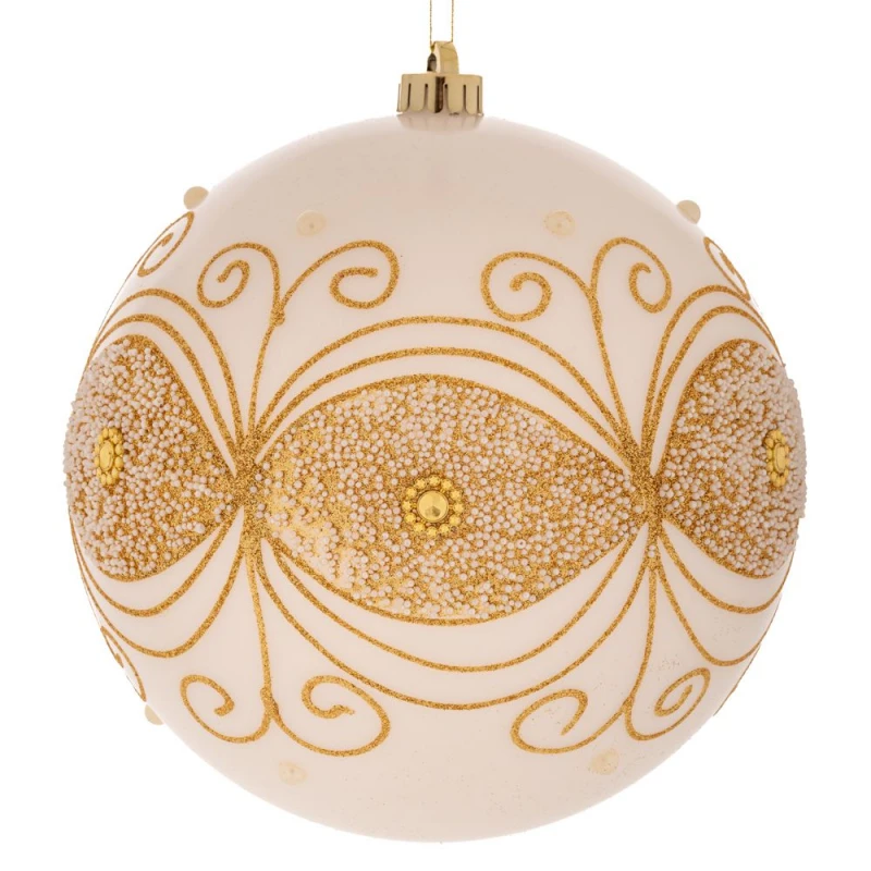 Χριστουγεννιάτικη μπάλα πλαστική, περλέ με σχέδια σε λευκό χρώμα από την iliadis - Διαστάσεις: 25εκ. - Η ελάχιστη ποσότητα αγοράς για αυτό το προϊόν είναι 2τμχ.