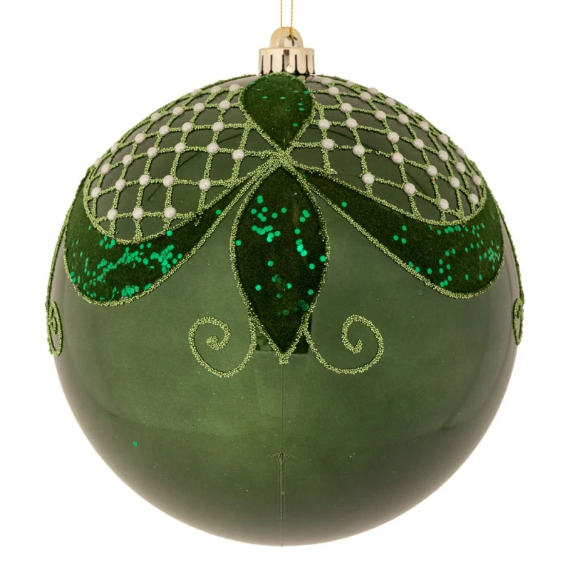 Χριστουγεννιάτικη μπάλα πλαστική, περλέ με σχέδια σε κυπαρισσί χρώμα από την iliadis - Διαστάσεις: 25εκ. - Η ελάχιστη ποσότητα αγοράς για αυτό το προϊόν είναι 2τμχ.