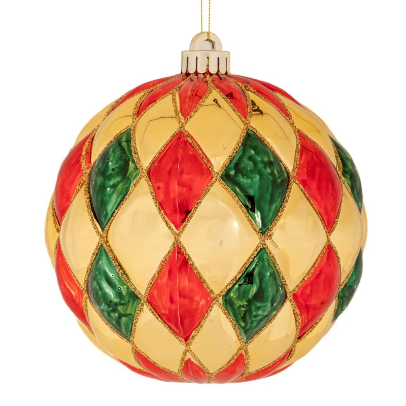 Χριστουγεννιάτικη Μπάλα Πλαστική Γυαλιστερή Με Σχέδια Κόκκινη-Πράσινη 15εκ. iliadis 90975