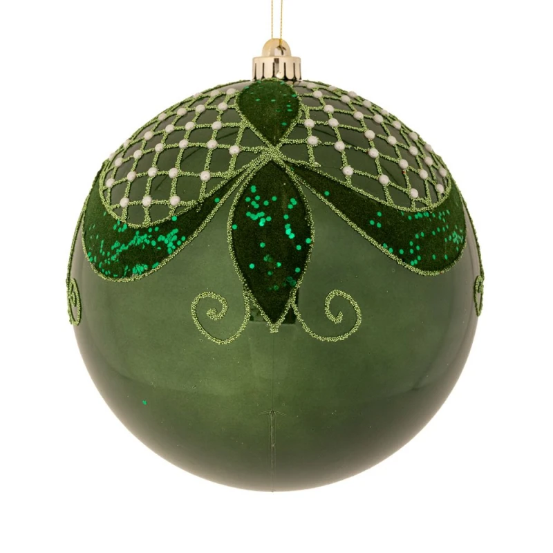 Χριστουγεννιάτικη μπάλα πλαστική, περλέ με σχέδια σε κυπαρισσί χρώμα από την iliadis - Διαστάσεις: 15εκ. - Η ελάχιστη ποσότητα αγοράς για αυτό το προϊόν είναι 4τμχ.