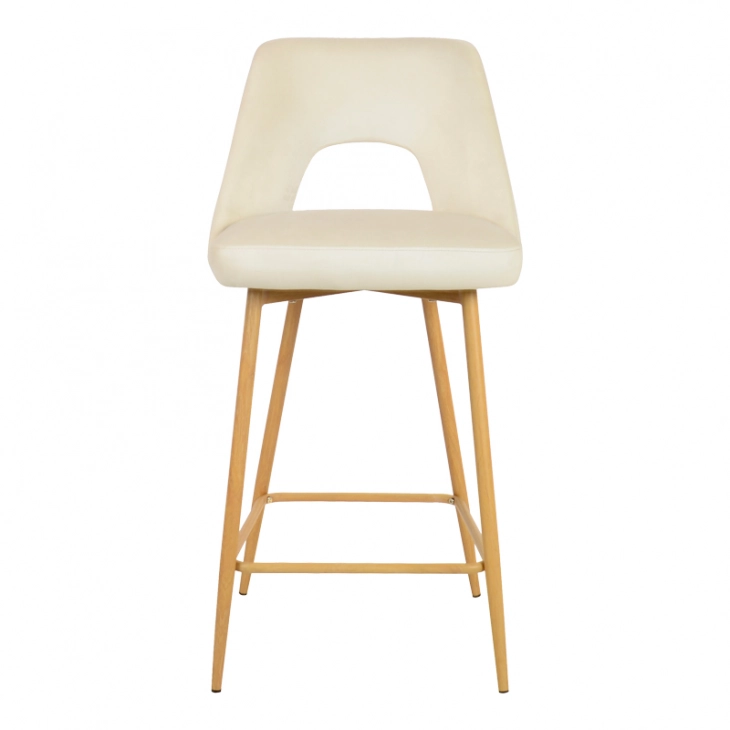 Σκαμπό μπαρ Murde pakoworld μπεζ βελούδο και μεταλλικά πόδια σε φυσική απόχρωση 47x52x96εκ