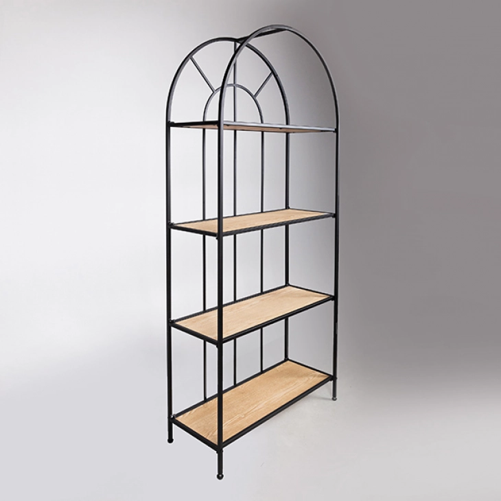 Ραφιέρα μεταλλική σε μαύρο χρώμα με ξύλινα ράφια σε φυσικό χρώμα από την ESTHETI - Διαστάσεις: 70x28x161εκ.