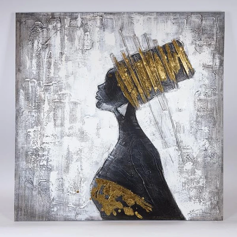 Πίνακας καμβάς με γυναικεία φιγούρα σε μαύρο - χρυσό - ασημί χρώμα από την ESTHETI - Διαστάσεις: 100x3x100εκ.