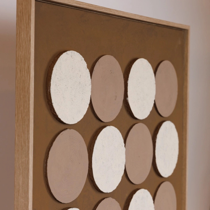 Πίνακας Καμβάς-Ξύλινος Με 3D Κύκλους Καφέ-Μπεζ 60x2,9x80εκ. ESTHETI 812-20020
