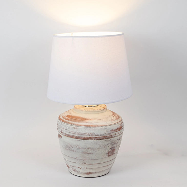 Φωτιστικό Επιτραπέζιο Κεραμικό Αντικέ Λευκό-Μπεζ 25x25x56εκ. ESTHETI 757-10108