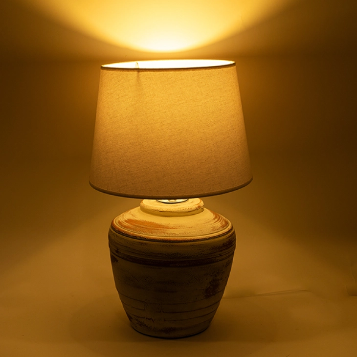 Φωτιστικό επιτραπέζιο κεραμικό μπεζ αντικέ με λευκό καπέλο από την ESTHETI - Διαστάσεις: 25x25x56εκ.