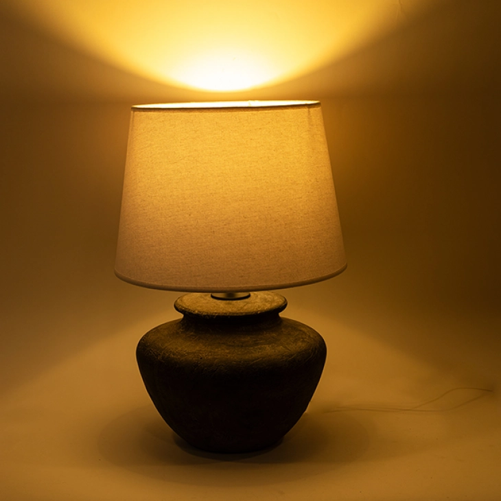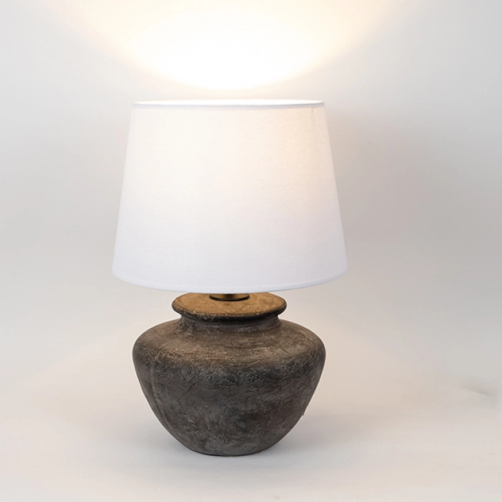Φωτιστικό επιτραπέζιο κεραμικό μαύρο αντικέ με λευκό καπέλο από την ESTHETI - Διαστάσεις: 27x27x34εκ.