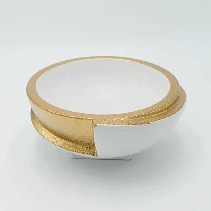 Διακοσμητικό μπωλ κεραμικό σε λευκό-χρυσό χρώμα από την ESTHETI - Διαστάσεις: 23,5x23x10,5εκ.