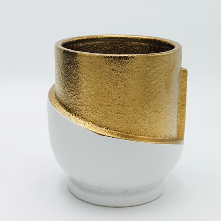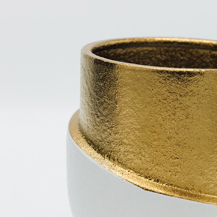Βάζο κεραμικό σε λευκό-χρυσό χρώμα από την ESTHETI - Διαστάσεις: 17,5x17x30,5εκ.