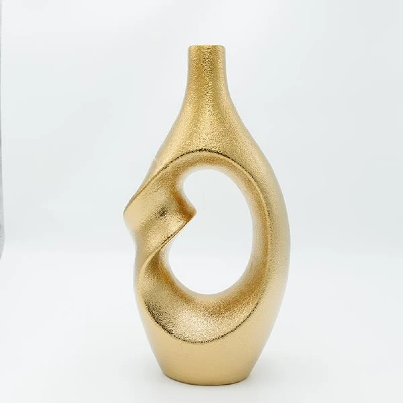 Βάζο κεραμικό σε χρυσό χρώμα από την ESTHETI - Διαστάσεις: 19x9,5x37,5εκ.