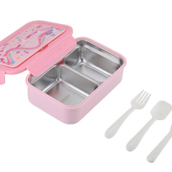 Φαγητοδοχείο Παιδικό 2 Ανοξείδωτων Θέσεων Με Πιρούνι-Κουτάλι-Μαχαίρι 900ml-20x13,2x7εκ. Raibow Dreams Save The Aegean Estia 01-34382