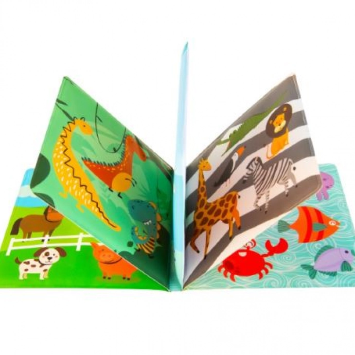 Με αυτό το βιβλίο, το μπάνιο γίνεται παιχνιδάκι. Οι εικόνες είναι κατάλληλα επιλεγμένες για την ηλικία του παιδιού, αναπτύσσουν τις γνώσεις τους για τον κόσμο των ζώων και το κρατάνε απασχολημένο για ώρες.