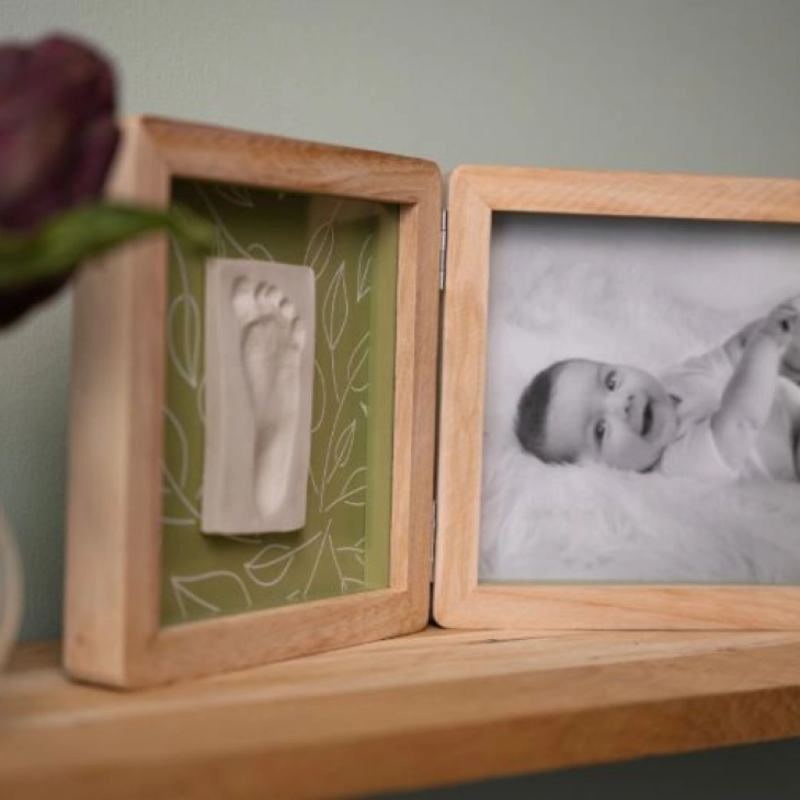 Το Double Frame – Olive Tree είναι δύο κορνίζες σε μια για να μπορείτε να εμφανίζετε τόσο μια φωτογραφία όσο και ένα αποτύπωμα μωρού.