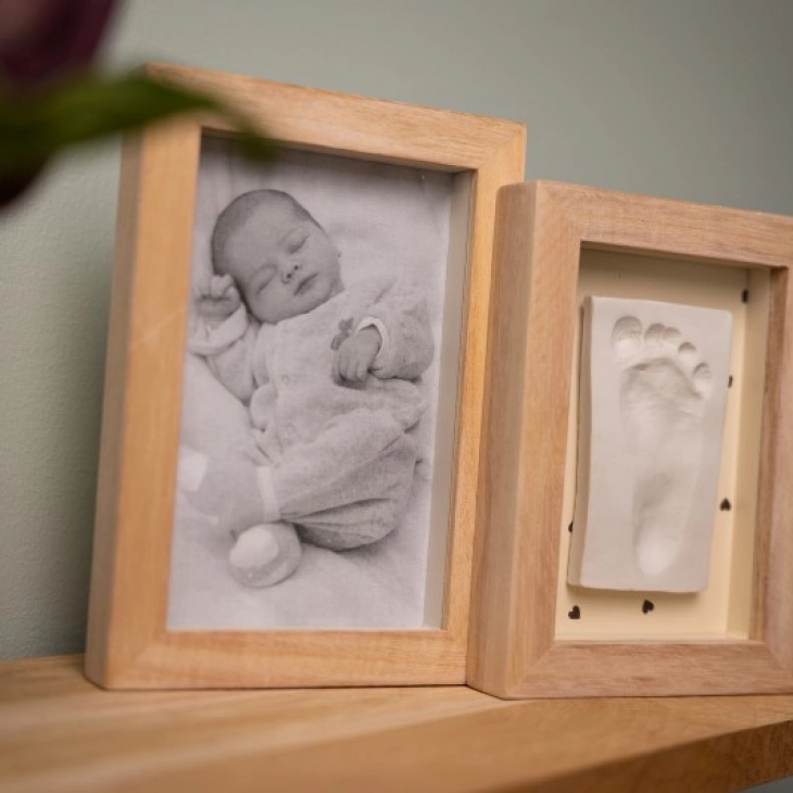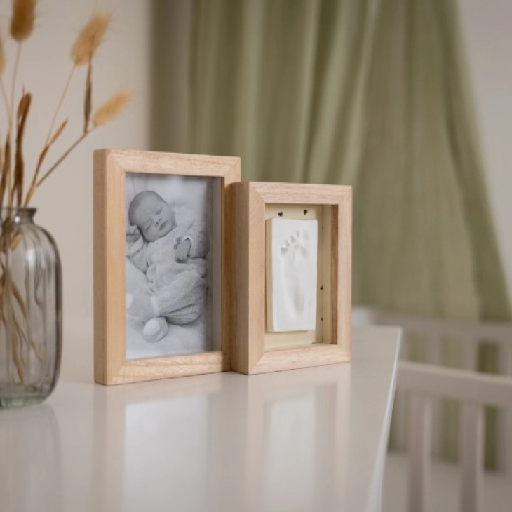 Το Duo Frame – Pretty Hearts είναι μια διπλή κορνίζα για να φιλοξενήσει και το αποτύπωμα και τη φωτογραφία του μωρού.
